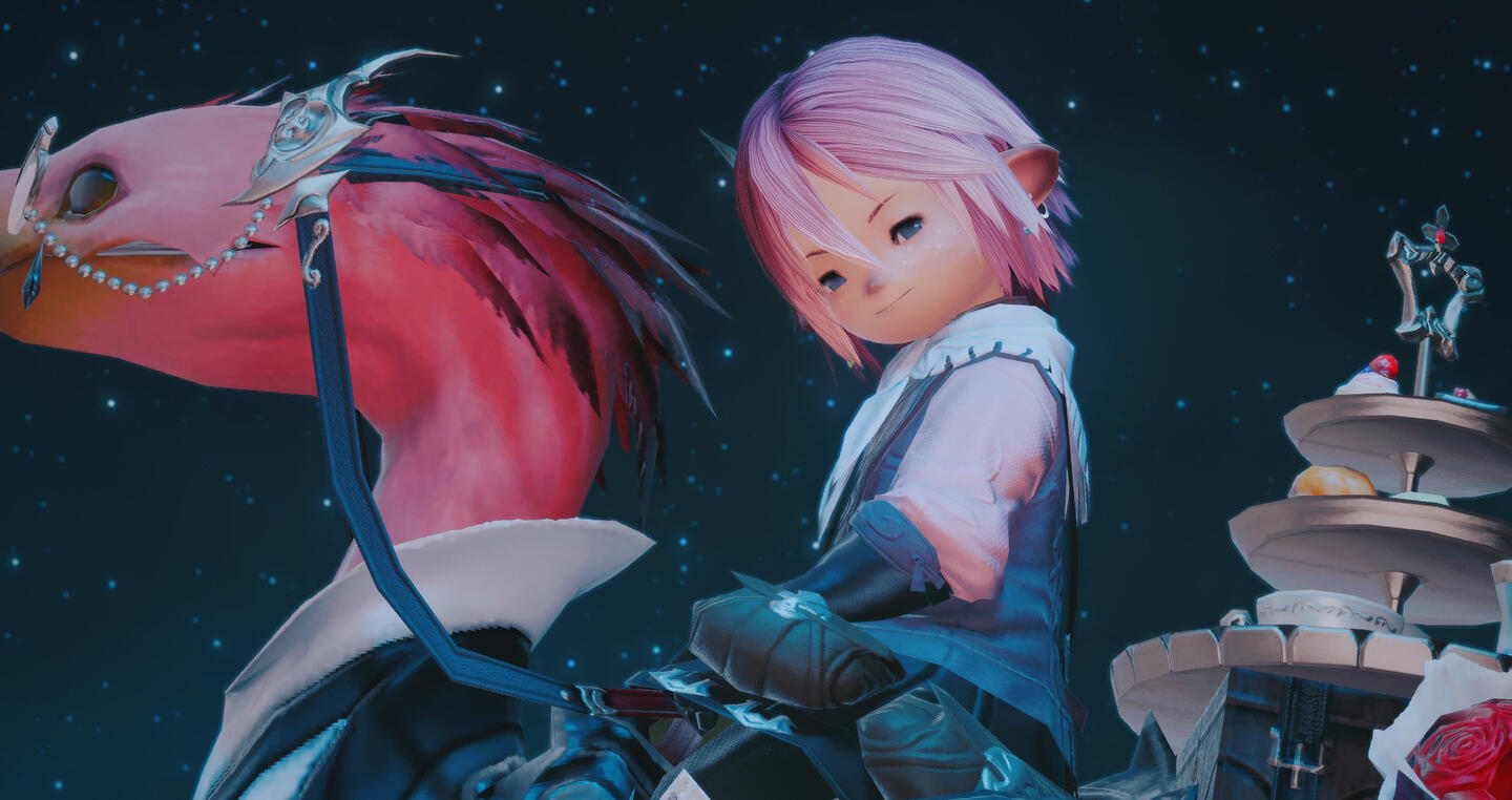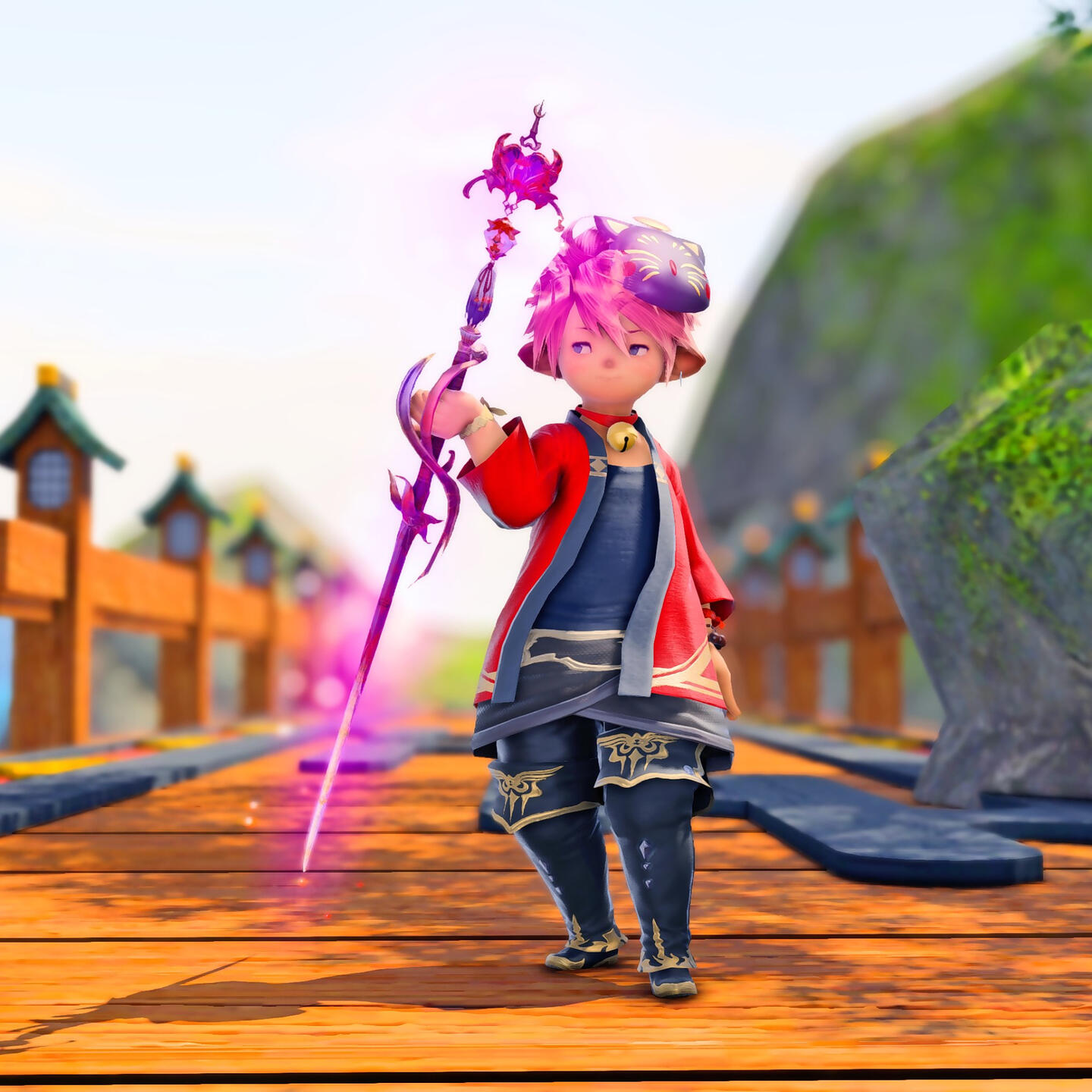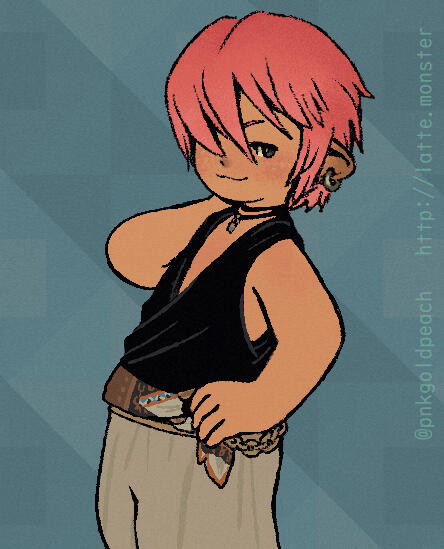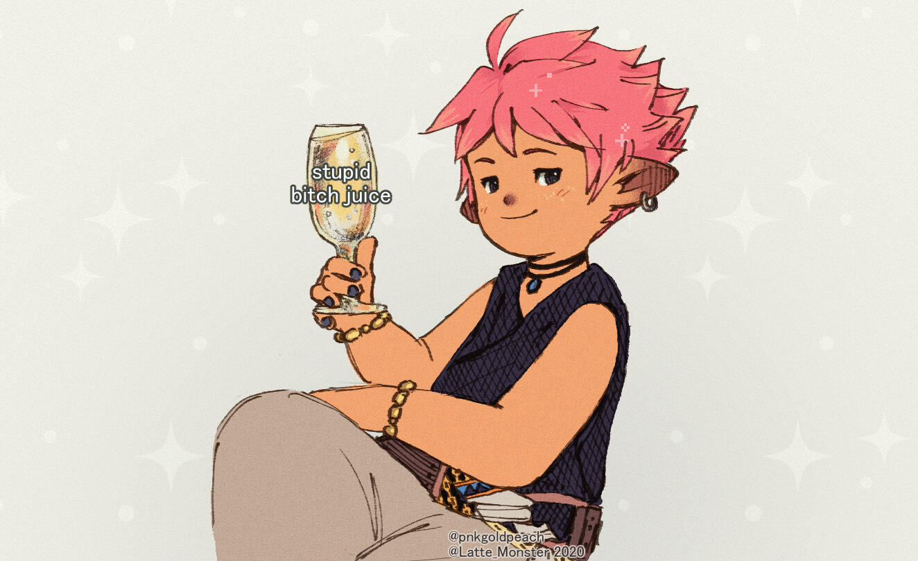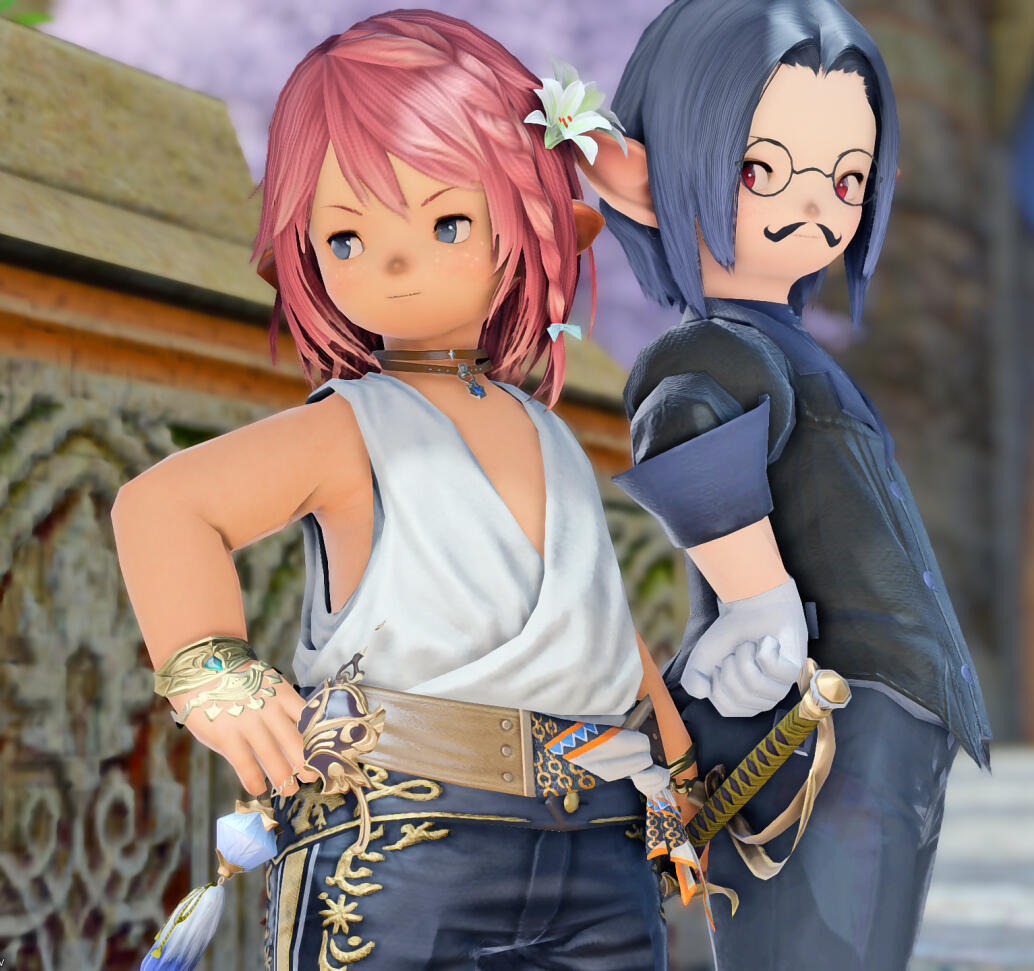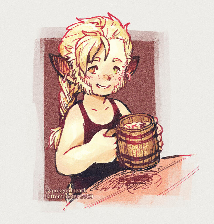 Dunesfolk LalafellAge: 28Gender: Male (cis, he/him)Main Class: Red Mage-------------------------------------------Height: 2'10" (min height)Eyes: Cool GreyPiercings/etc: One earring on left ear. Sometimes wears makeup glitter.-------------------------------------------Background: Born & raised in Ul'Dah, became an adventurer with financial support from his wealthy parents.Personality: Energetic, fun-loving, feisty, and has a penchant for mischief and self-indulgence. Has great love and generosity for his friends. Likes to help others if it doesn't inconvenience him too much. Has a big heart, but would like to pretend he doesn't.Likes: Seeing new places, expanding his culinary palate, teas + coffees + wine & mixed drinks, dried fruits & nuts and any kind of sweets incorporating those, being held and carried by large folk, The Gold Saucer, treating his friends to indulge with him.